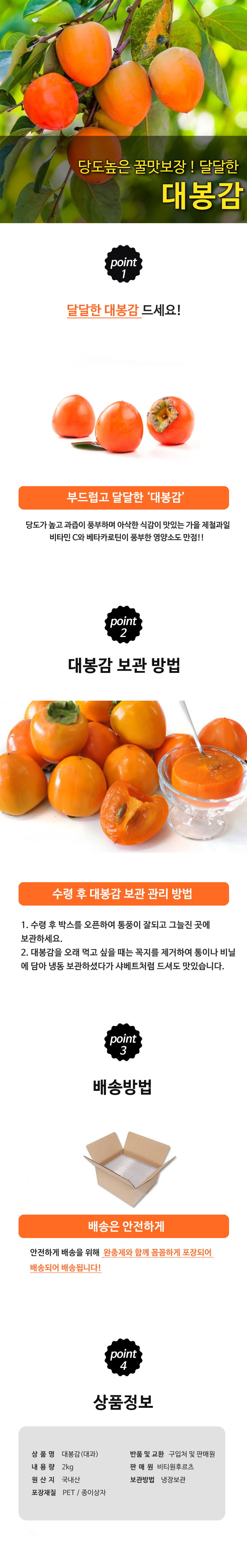 [국산과일] 당도높은 꿀맛 대봉감 2kg 6-8과 (대과)