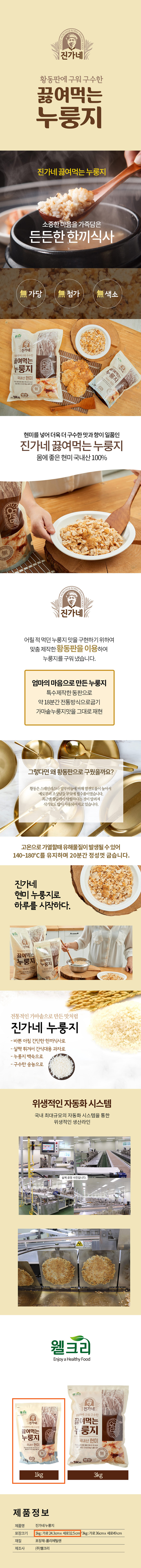 진가네 황동판에 구워 구수한 끓여먹는 누룽지 3kg