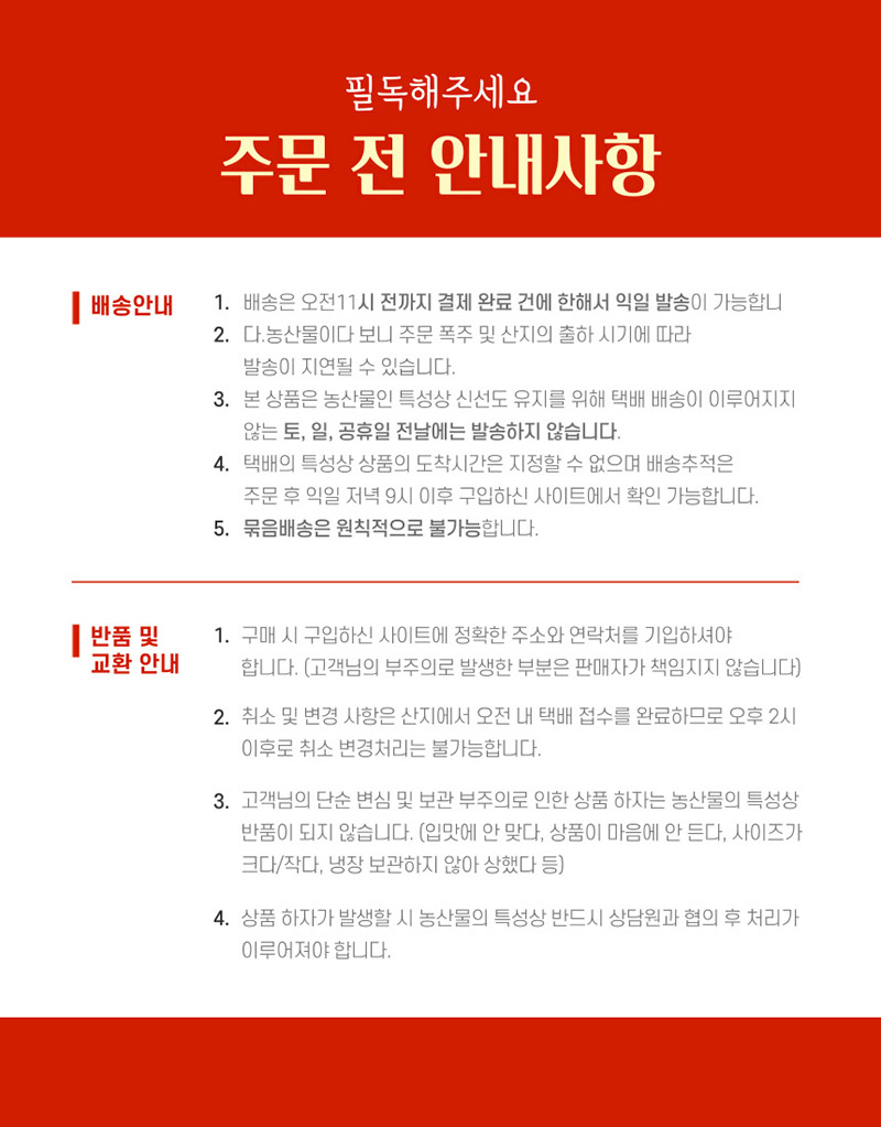 ※ 상품정보에 별도 기재된 경우, 아래의 내용보다 우선하여 적용됩니다.