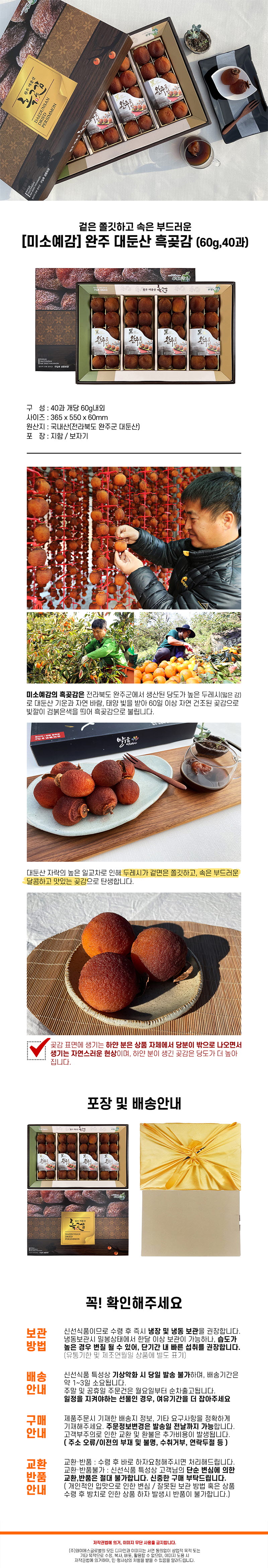 [미소예감] 완주 대둔산 흑곶감 50g내외 40과 (보자기)