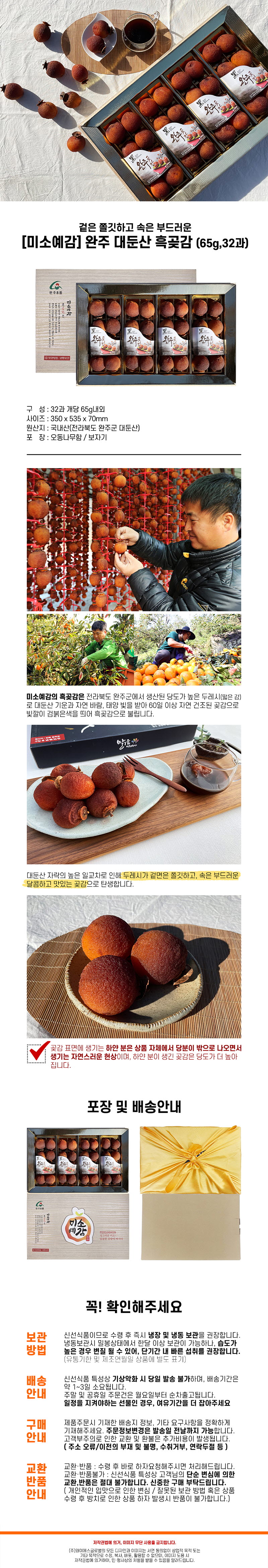 [미소예감] 완주 대둔산 흑곶감 50g내외 20과 (보자기)