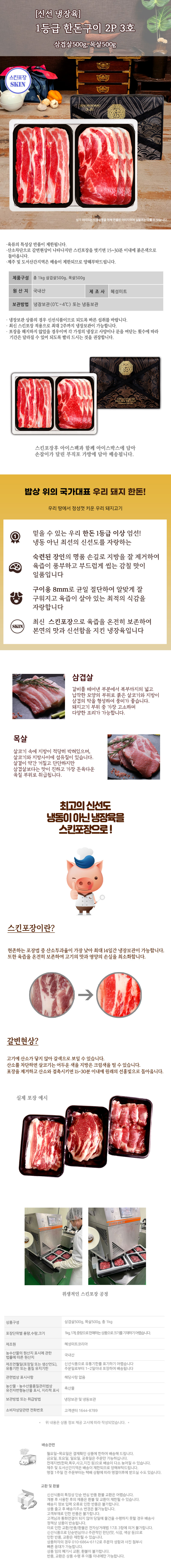 [냉장/스킨] 1등급 한돈구이 2P 1호 600g(삼겹살300g, 목살300g)