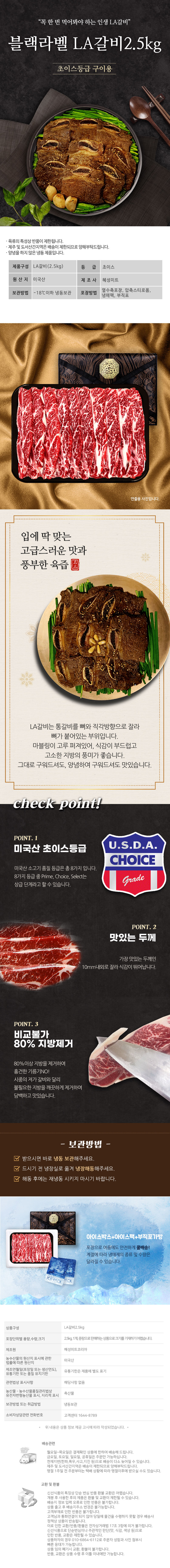 [블랙라벨] 초이스구이용 LA갈비2.5kg(미국산)
