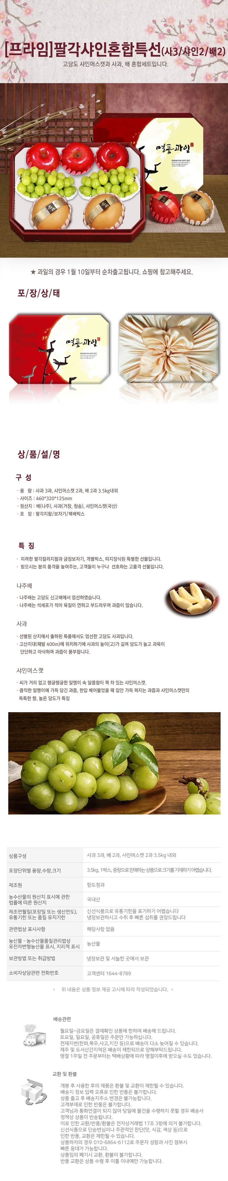 [델리후르츠] [프라임] 팔각 샤인혼합 특선(사과 3과, 샤인머스캣 2과, 배 2과 3.5kg내외 )