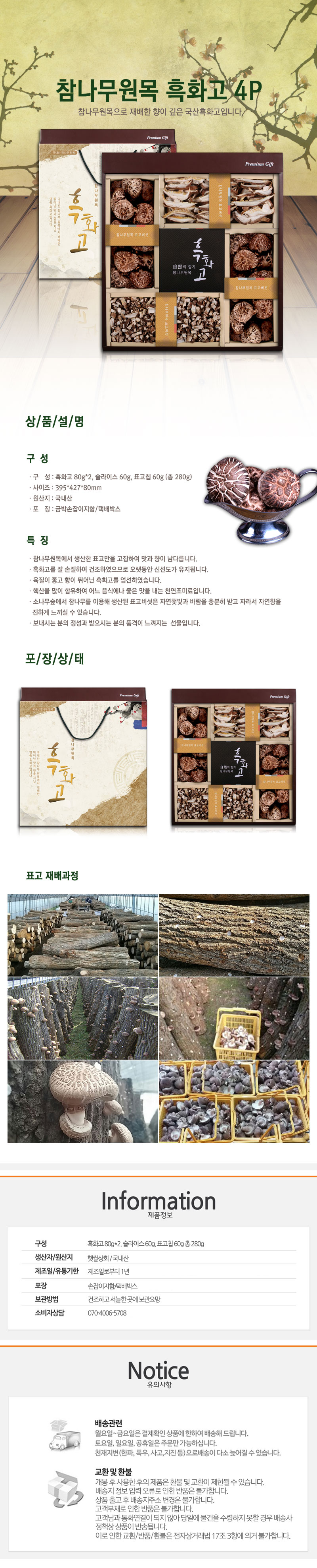 [참나무원목] 흑화고4P (흑화고 80g*2, 슬라이스 60g, 표고칩 60g(총 280g))