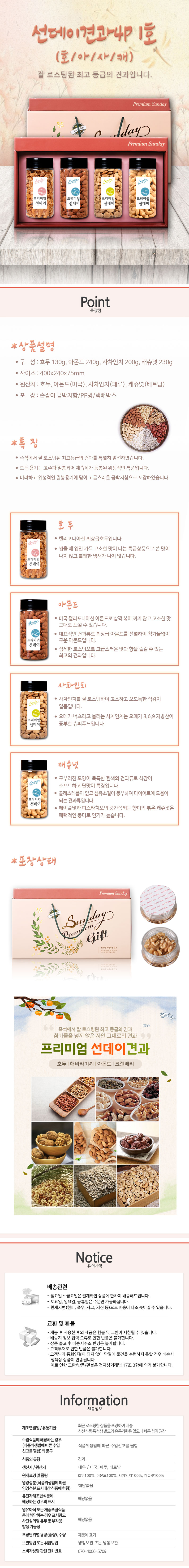 [선데이견과] 선데이견과 팔각특선 견과1호(호두180g, 아몬드280g, 크렌베리290g, 해바라기씨 270g)