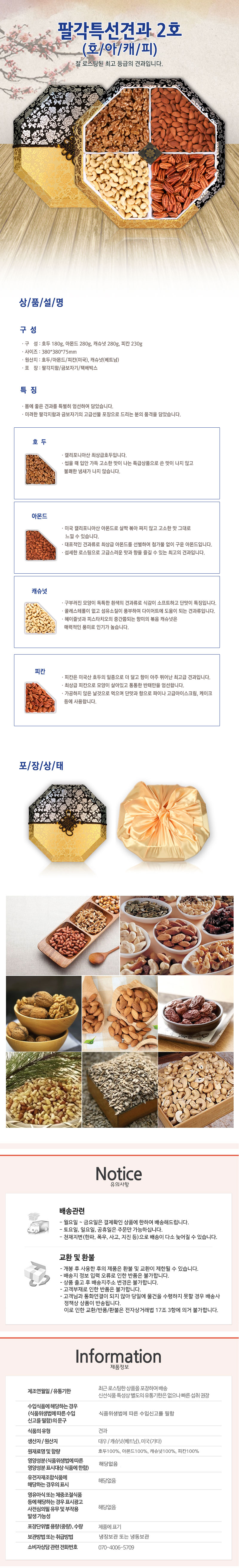 [선데이견과] 선데이견과 팔각특선 견과2호(호두180g, 아몬드280g, 캐슈넛280g, 피칸230g)