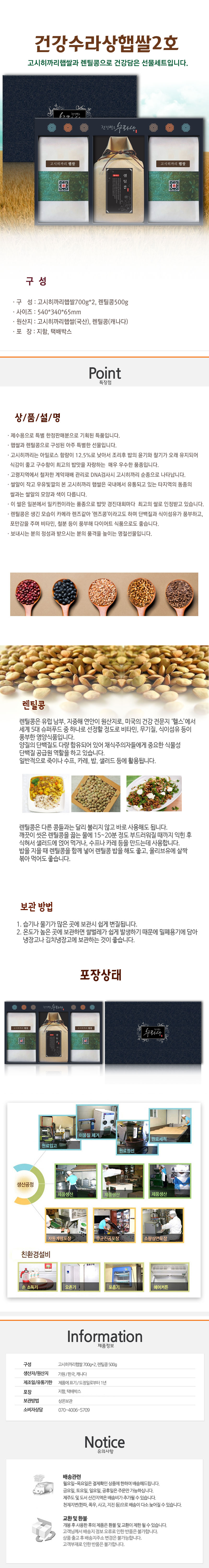 [가원] [차례상/고시히까리] 건강수라상햅쌀2호 (고시히까리 햅쌀 700g*2/렌틸콩 500g)