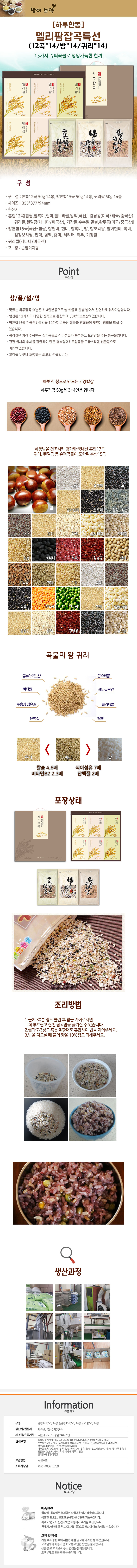 [델리팜][하루잡곡] 델리팜잡곡2호(혼합12곡 50g*6봉, 밤혼합15곡 50g*6봉, 귀리쌀 50g*6봉)