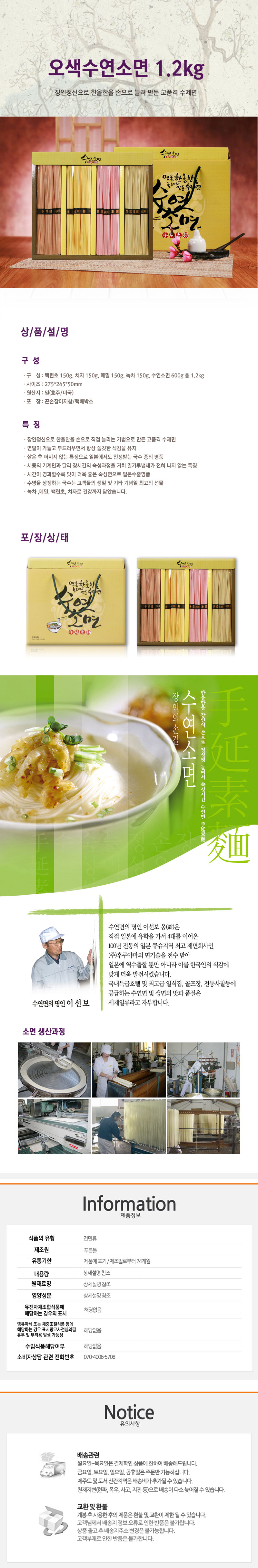 [오색수연소면] 오색수연소면1.2kg (백련초150g, 치자150g, 메밀150g, 녹차150g, 수연소면600g 총 1.2kg)