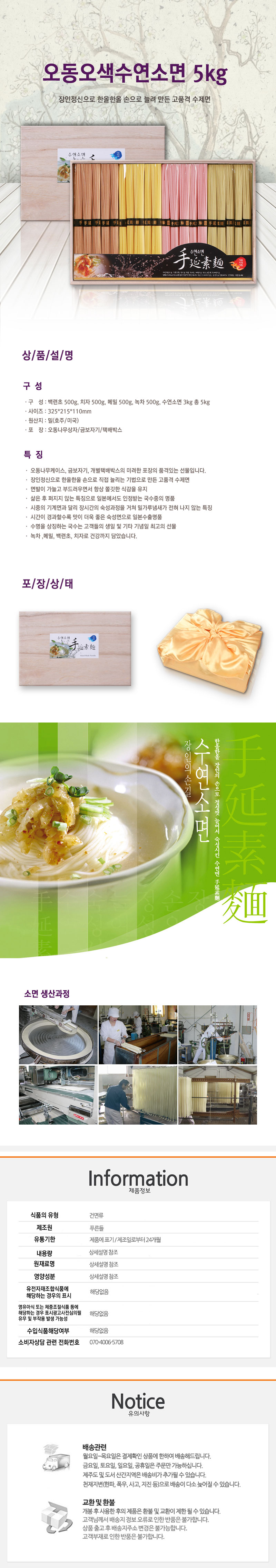 [오색수연소면] 오색수연소면750g (백련초150g, 치자150g, 메밀150g, 녹차150g, 수연소면150g 총 750g)