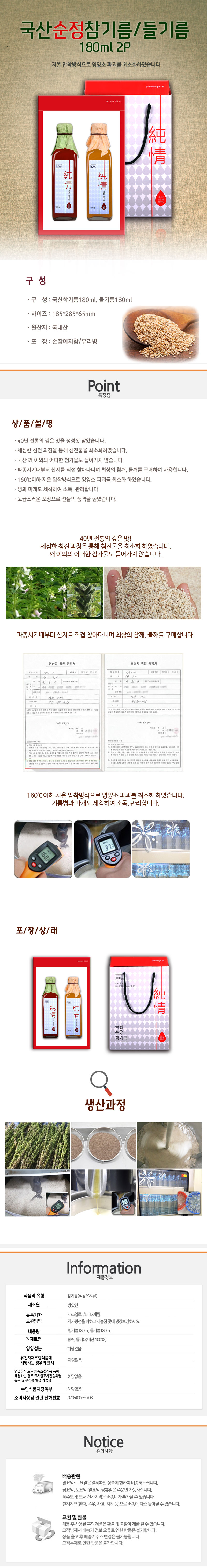 [순정]국산순정참기름/들기름세트1호(180ml*2)