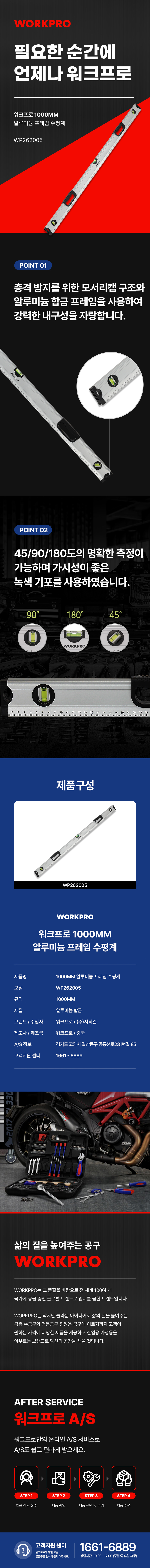 워크프로 1000mm 알루미늄 프레임 수평계 WP262005