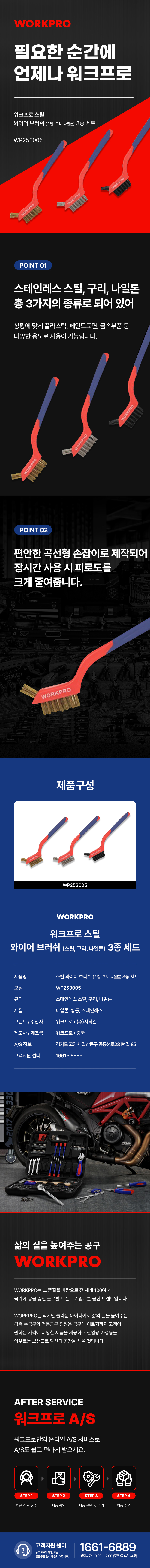 워크프로 스틸 와이어 브러쉬 (스틸, 구리, 나일론) 3종 세트 WP253005