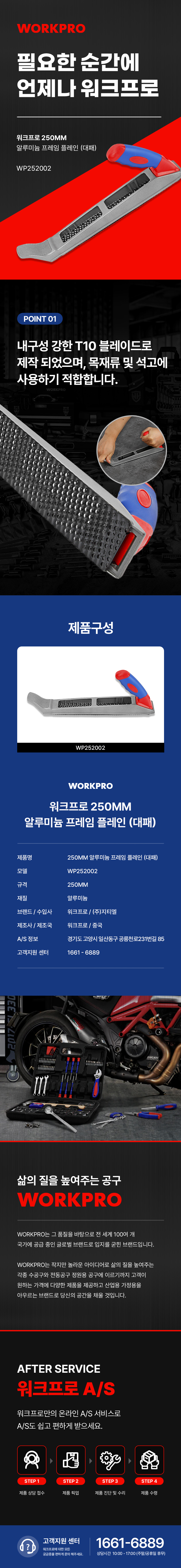 워크프로 250mm 알루미늄 프레임 플레인 (대패) WP252002