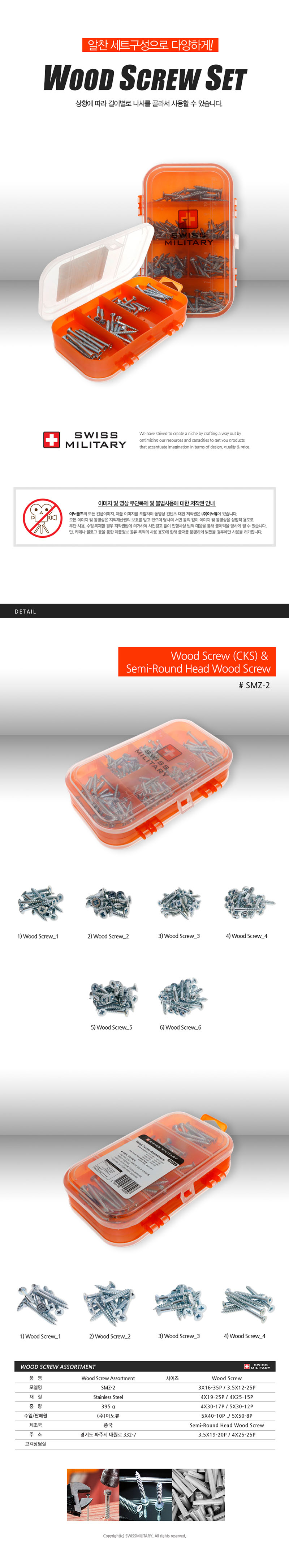 스위스밀리터리 192pcs 목재용 나사못세트 SMZ-2