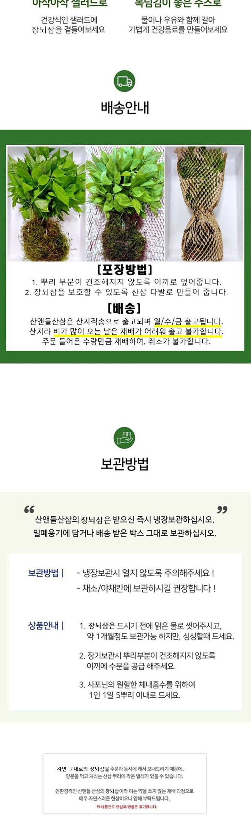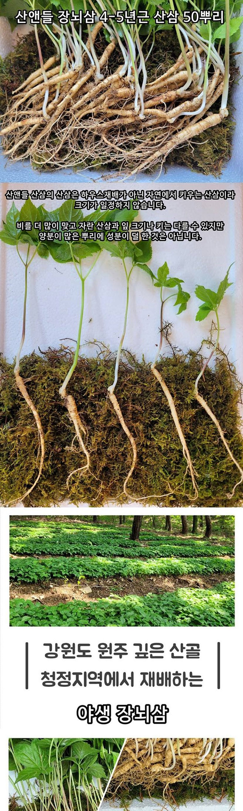 산앤들산삼 강원도 야생 산삼 4-5년근 장뇌삼 50뿌리