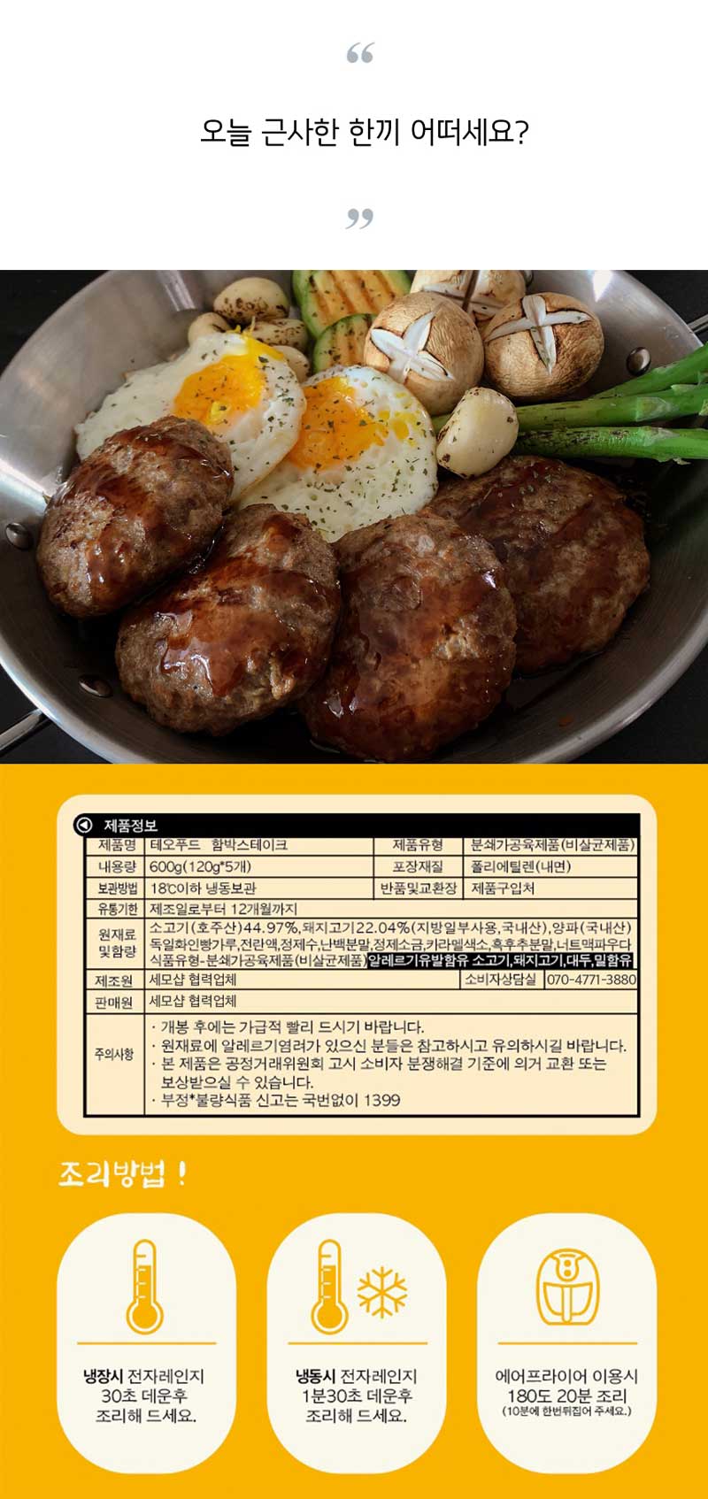 테오푸드 육즙 폭탄 함박스테이크 1팩(120g X 5개) + 특제소스 200ml 1개