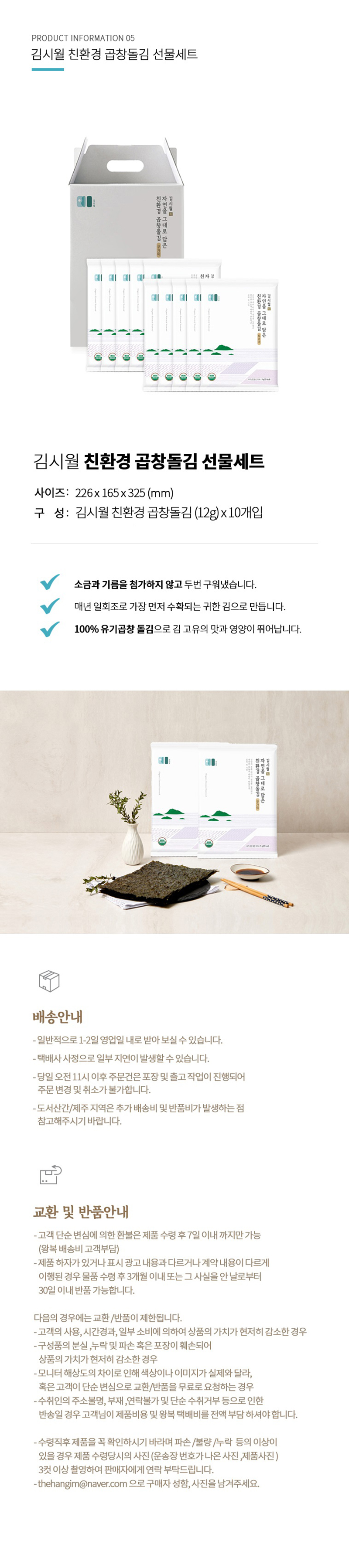김시월 친환경 곱창돌김 선물세트 12g x 10개입