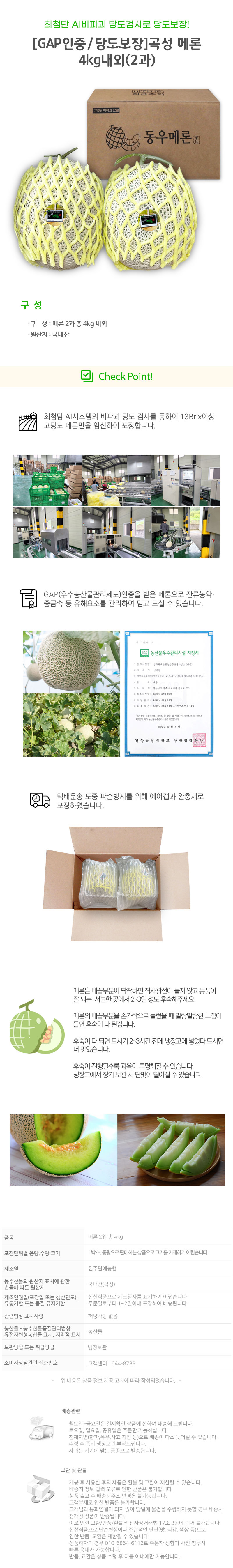 [GAP인증/당도보장]곡성 메론 4kg내외(2과)